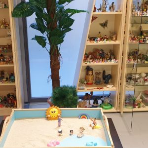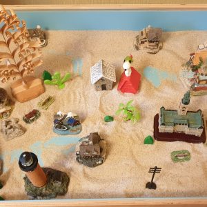 Hiekkaterapia edistää luovuutta, POISTA EPÄILYÄ koska käytettävissä on valmiita hahmoja ja hiekka, eikä ole väliä kuinka taitava ihminen on.